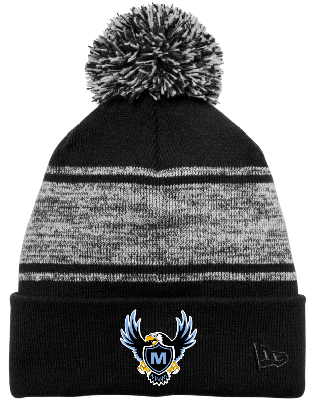 Three contrast stripes give a retro nod to this pom beanie, while the marled yarns put it right on-trend.