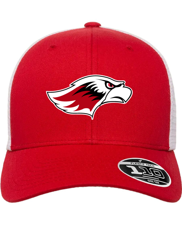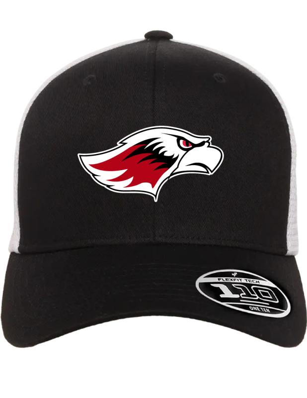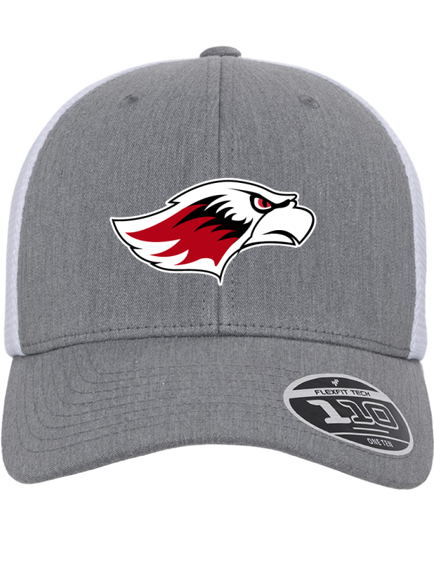 56% polyester, 44% cotton; adjustable + Flexfit® tech = Flexfit 110® cap; mesh cap for utlimate comfort and ventilation; premium Flexfit 110® fabric sweatband; 6-panel, mid profile, structured; plastic snapback closure; permacurv® visor; silver undervisor, 8-row stitching on visor