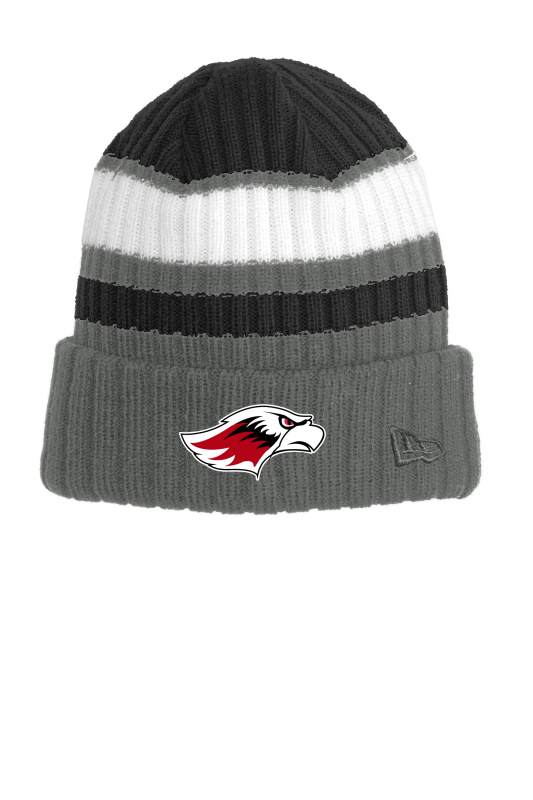Ribbed and striped this warm beanie is perfect for team events or everyday wear. A tonal embroidered New Era flag adds subtle character. Fabric: 100% acrylic yarn New Era products may not be resold without embellishment.