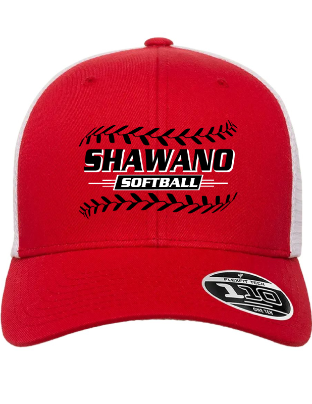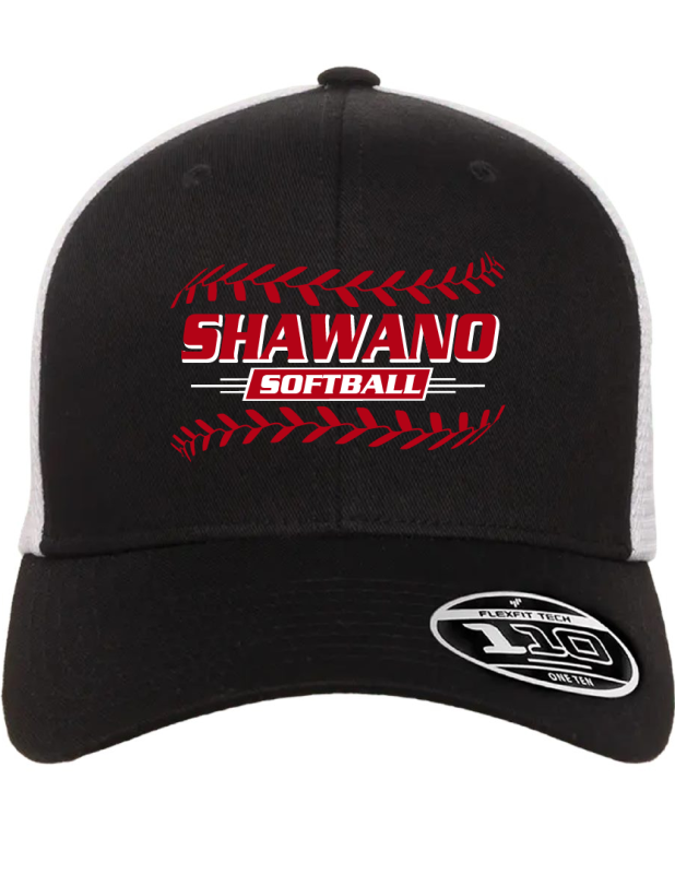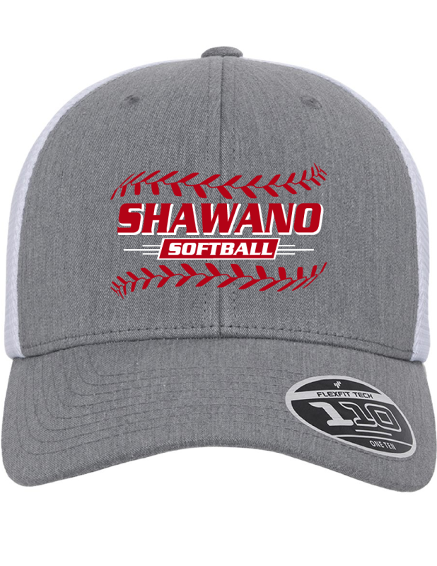 56% polyester, 44% cotton; adjustable + Flexfit® tech = Flexfit 110® cap; mesh cap for utlimate comfort and ventilation; premium Flexfit 110® fabric sweatband; 6-panel, mid profile, structured; plastic snapback closure; permacurv® visor; silver undervisor, 8-row stitching on visor