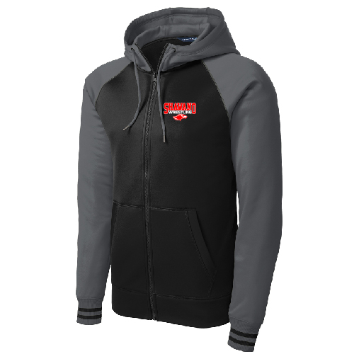 With colorblock raglan sleeves, this varsity-inspired jacket wicks moisture and fights static.